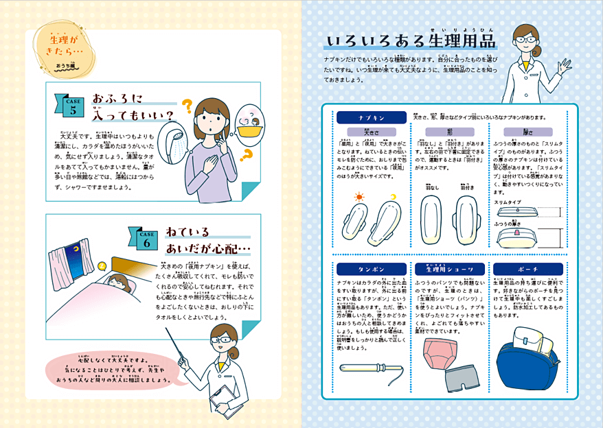 初潮指導や月経相談にご活用頂ける冊子のご案内です。ダウンロードでご利用頂けます。